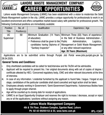 LWMC Jobs 2026 Lahore Waste Management Company